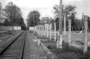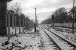 But I can picture us—standing on the railway track in Steinstücken, at the furthest edge of the West, facing our goal—the gap in the tall cement Berlin Wall border area left open here for trains. Visible through the opening, the tracks continued, and on either side was a strip of rich brown-black earth. Meticulously cleared, but barren, this was No-Man’s Land. Here, the East German border patrol would spot, apprehend, and sometimes fire on Sperrbrecher—border violators—foreign and East German alike.